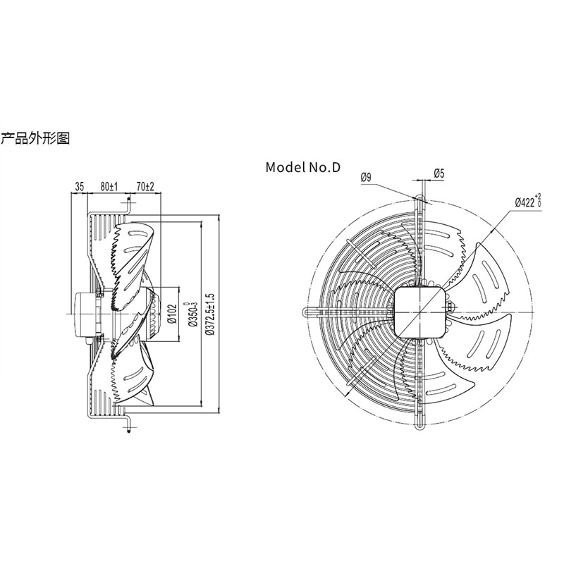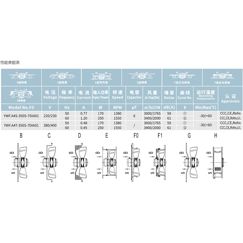1. YWF.A4S-350S-5DIA00全新廚房排煙工業(yè)專用網(wǎng)罩式外轉(zhuǎn)